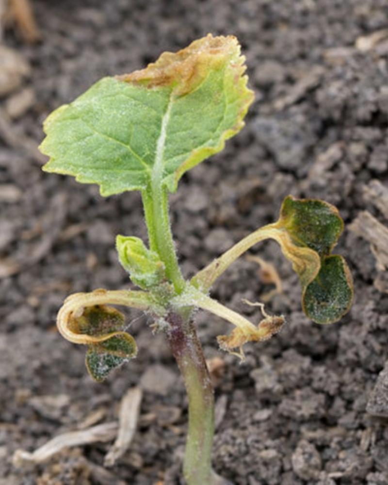 Canola seedlings can often recover from light frost if the growing point remains intact. Wait 3-7 days before assessing damage. Look for green hypocotyls and new leaf growth. Thin stands (10-20 plants/m²) can still yield well with good management. Consider foliar applications of micronutrients like boron (B), zinc (Zn), manganese (Mn), and copper (Cu) to support regrowth and stress recovery. Tissue testing using NutriScan leaf tissue analytics before application helps determine crop need.